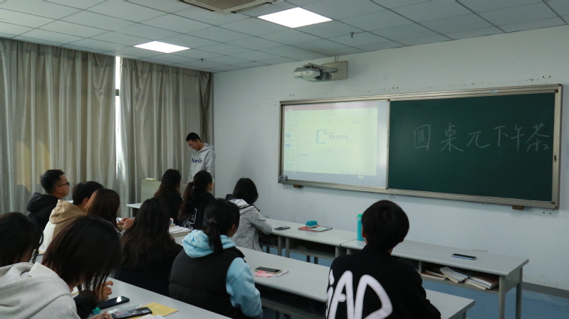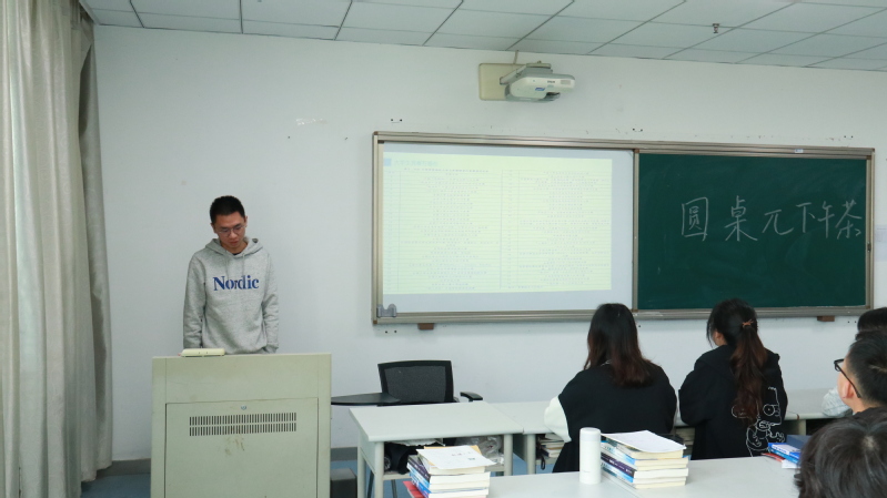 于逸夫楼311教室举办圆桌π下午茶——国奖获得者经验分享会。本次分享会由院学生会科创部部长罗子昂主持,国家奖学金获得者张强、李娜主讲。