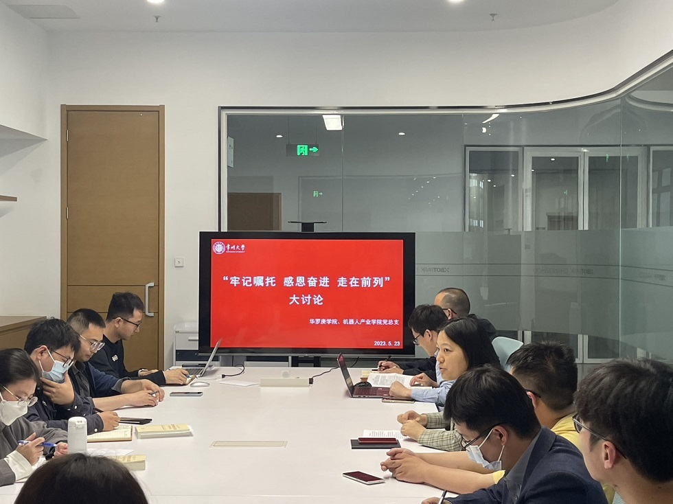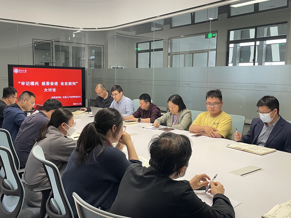 5月22日下午,富豪娱乐城下载 、机器人产业富娱 党总支开展“牢记嘱托、感恩奋进、走在前列”大讨论,深入学习贯彻习近平新时代中国特色社会主义思想,总结交流前一阶段学习和调研成果,努力以学铸魂、以学增智、以学正风、以学促干。会议由富娱 党总支书记宣慧主持,全体教师党员和部分学生党员代表参加讨论。