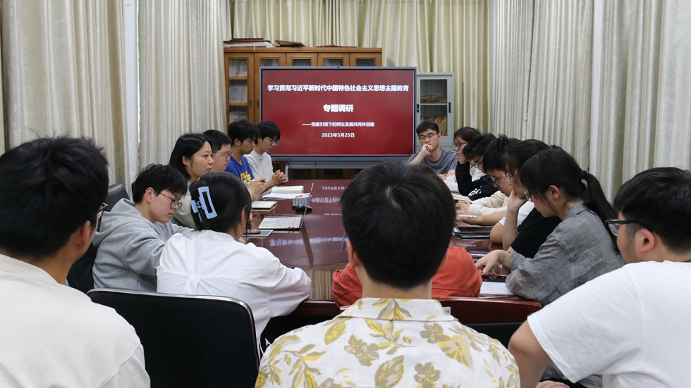 为切实有效推动党建引领下的师生发展共同体的全面建设,5月25日,富娱 党总支开展学习贯彻习近平新时代中国特色社会主义思想主题教育专题调研。富娱 党总支书记宣慧、辅导员姚沁及富娱 全体团委、学生会干部参会。