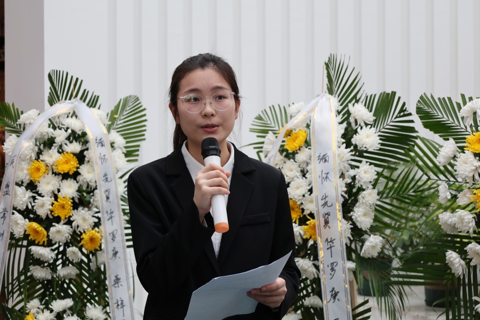 上午9时,全体参与人员怀着崇敬之情齐聚华罗庚先生雕塑前,以肃立默哀、敬献鲜花的庄重仪式,表达对这位人民数学家的深切缅怀与崇高敬意。随后,来自不同单位的三位代表依次发言,深情追忆华罗庚先生矢志报国、献身科学的光辉事迹。其中,富豪娱乐城官网 的张澜同学在发言中回顾了华罗庚先生从金坛走向世界数学巅峰的奋斗历程,分享了先生“精勤不倦、自强不息”的精神品格。作为富娱 学子,她表示将传承先生精神,刻苦钻研,立志成才,报效祖国。