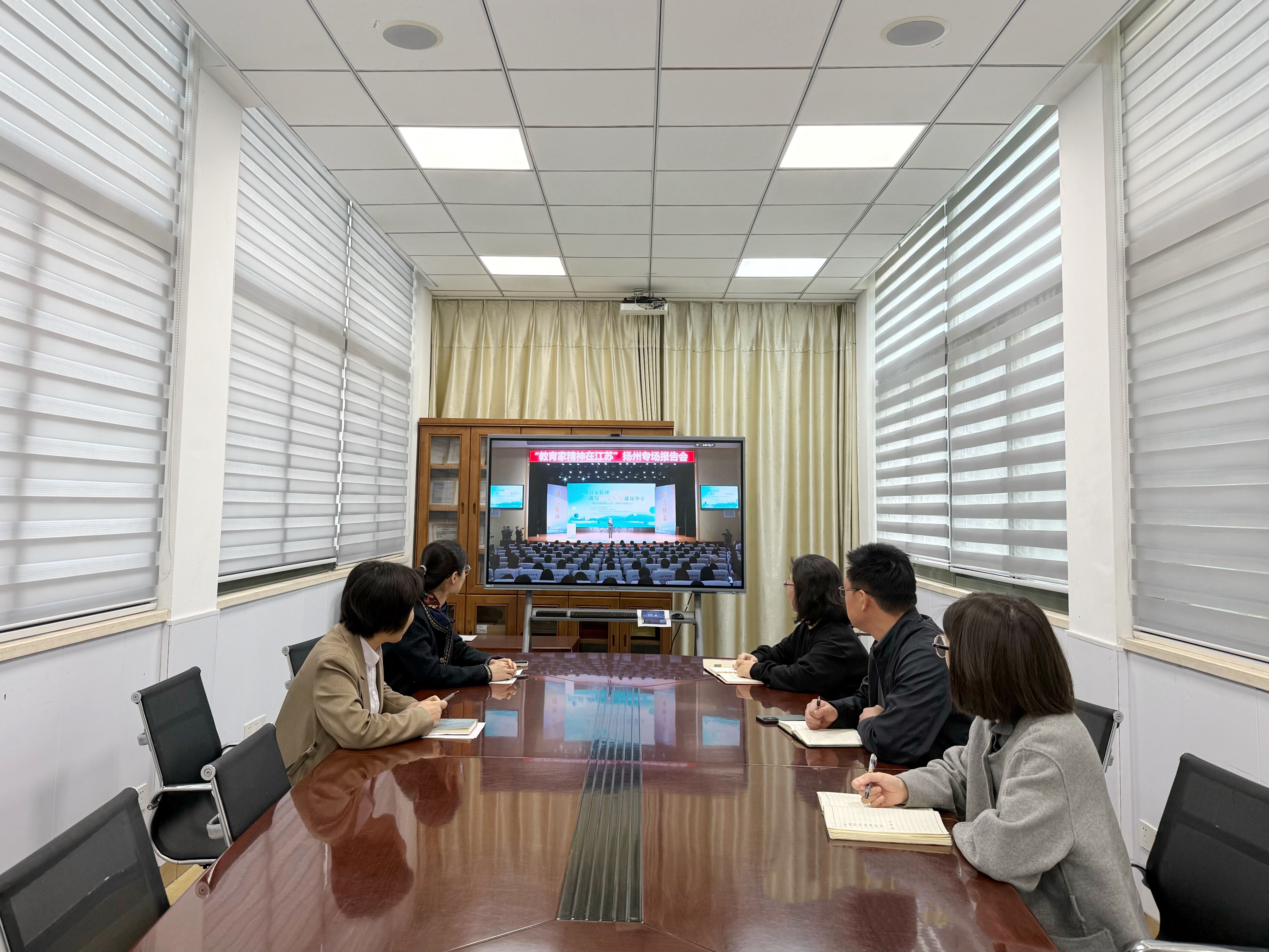 为深入贯彻教育家精神铸魂强师行动,助力教育强国建设,富豪娱乐城官网 全体教职工于4月24日集体收看了由江苏省教育厅主办的“教育家精神在江苏”扬州、泰州专场报告会。